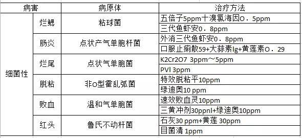 4、注意觀察及早發現及時對癥治療。鰻魚健康時活動良好,發病時活動異常、食欲下降,要及時檢查確診。檢查內容包括皮膚粘液、內臟器官(肝、膽、腸、胃、腎)、鰓組織(主要檢查寄生蟲、霉菌、細菌),另處還可通過肉眼觀察以及實踐經驗進行判斷,有的放矢地選擇藥品對癥下藥。如鰻魚發生鰓霉病要用亞甲基蘭而不能用抗菌素。鰻魚常發生的病害及治療方法筆者總結如下表。